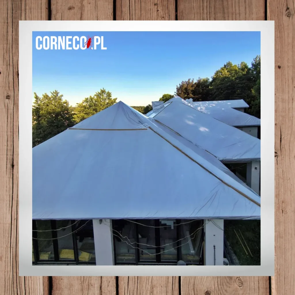 Kolejna realizacja miała miejsce w Bielsku-Białej. Tamtejszy obiekt wymagał fumigacji całej więźby dachowej. Dzięki szczelnej izolacji budynku oraz zastosowaniu profesjonalnych metod gazowania udało się skutecznie wyeliminować szkodniki, przywracając drewnu pełną ochronę.